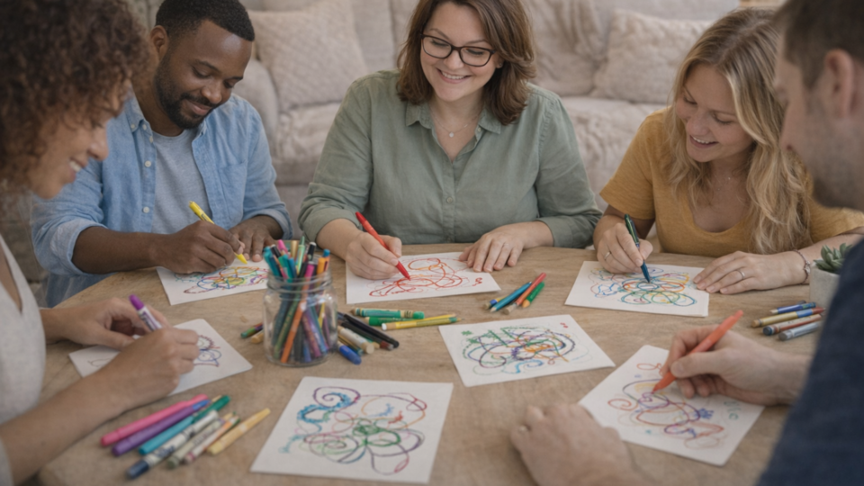 This is a guided NeuroSomatic Art session — a weekly in-person gathering where we use simple art journaling as a pathway to insight, clarity, and resolution. No art background needed. No pressure to make something beautiful. Just you, a journal, and a process that has a way of surfacing what you didn't know you were carrying.